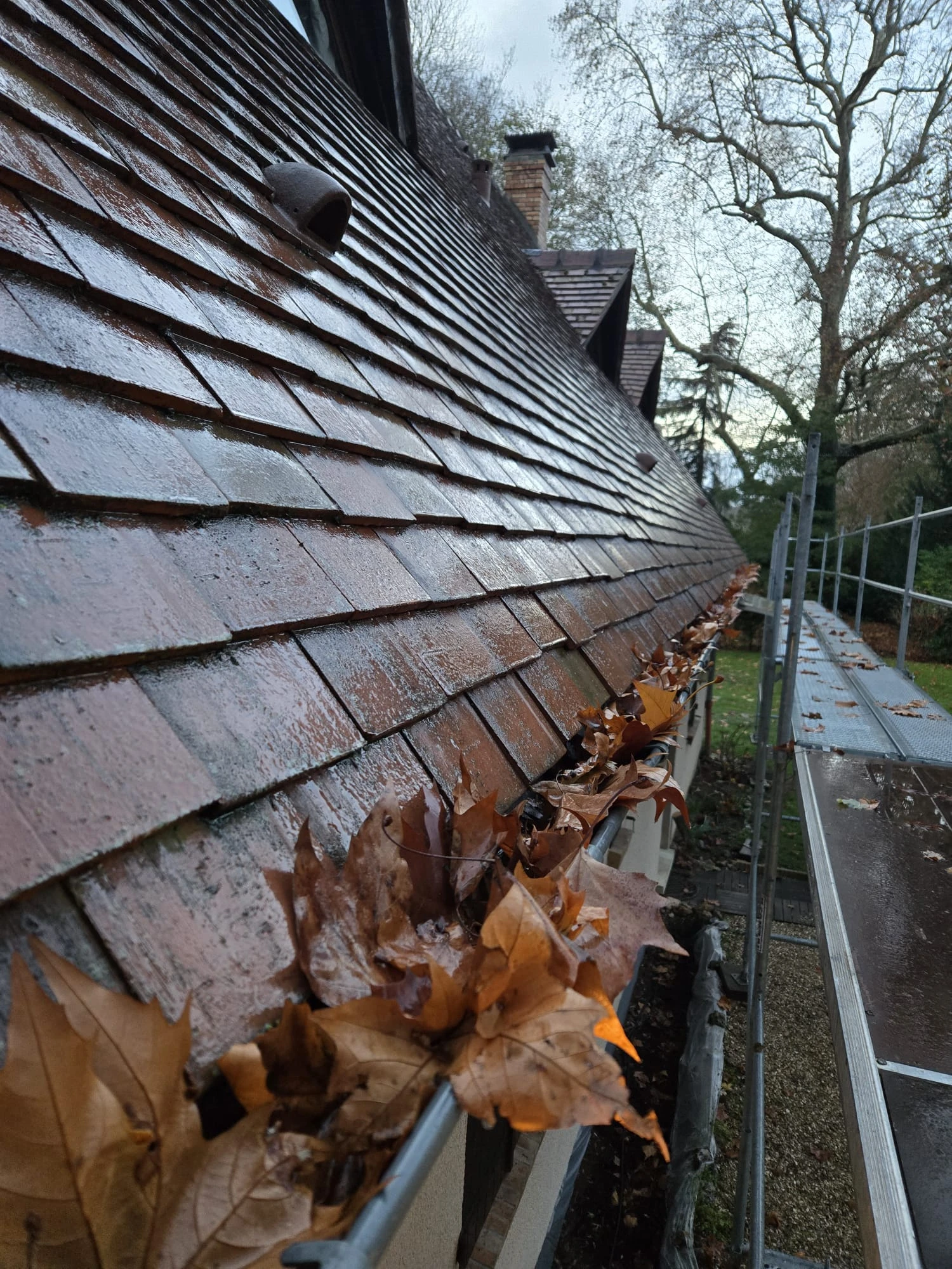 Nettoyage des gouttières et entretien du toit en automne - hiver à Vaux-sur-Eure (27)